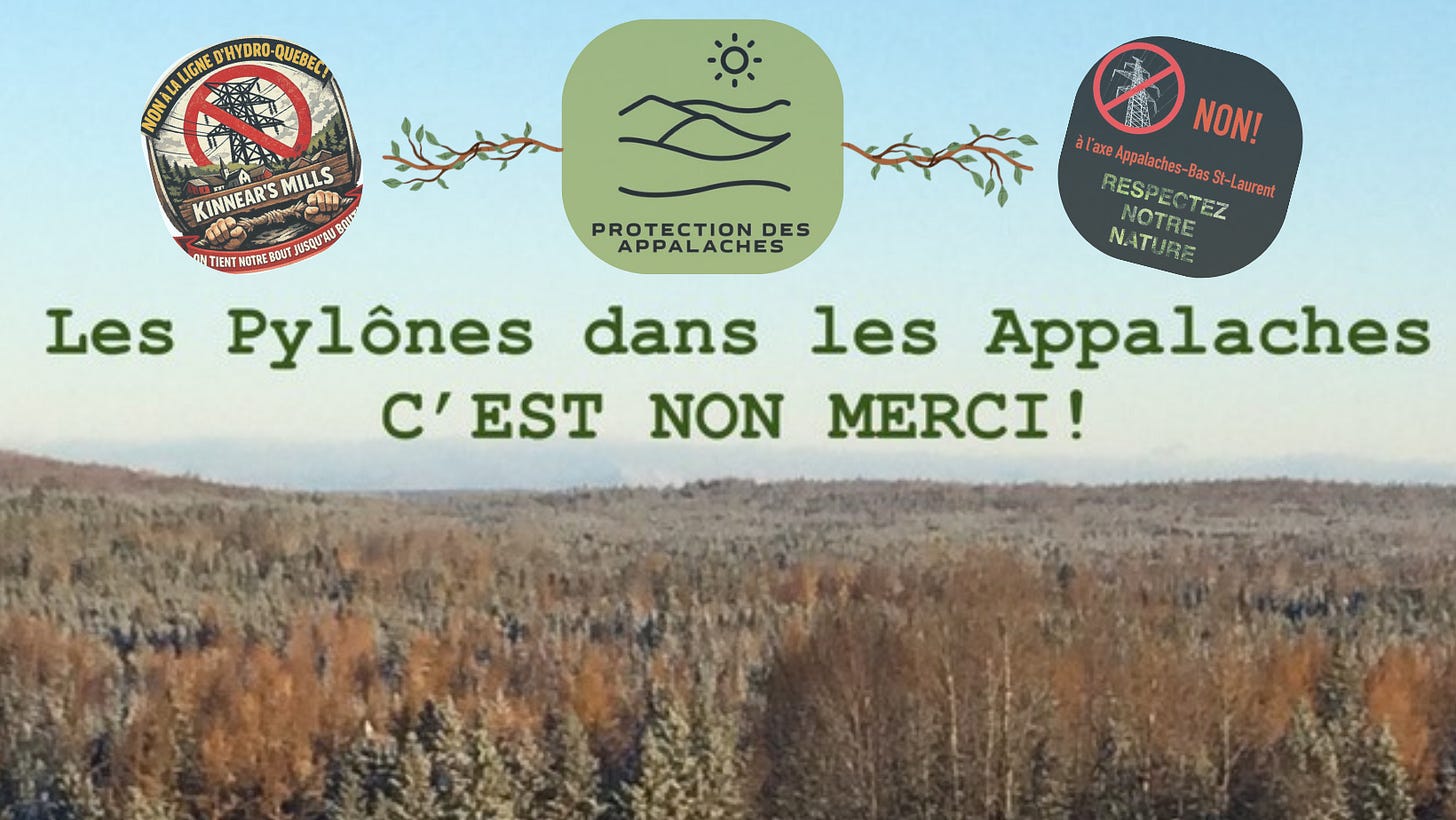Voici la campagne Protection des Appalaches que nous avons commencés dans les Appalaches depuis quelques semaines pour protéger nos paysages, nos forêts et notre économie locale. Voici un texte que j’ai écrit et qui est co-signé par plusieurs personnes de la région…il explique le pourquoi de refuser ce projet d'éfigurant d’Hydro-Québec. Je remercie Marie-Pierre Lessard et Chandra, des alliées fortes et inspirantes et aussi tout ce que j’ai appris dans les dernières années en nonviolence qui guide chaque pas de notre campagne pour le vivant. En voici un élément organisationnel important offert par le CNCR.