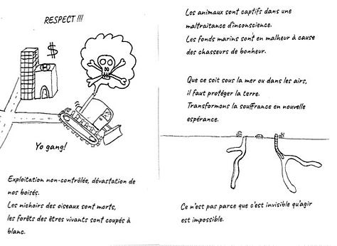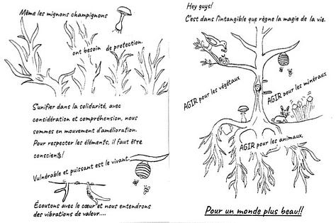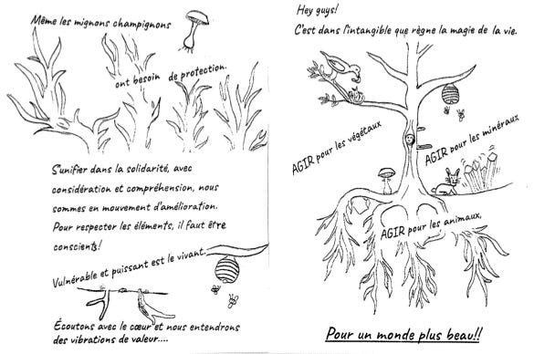 Ariane Picard, participante à la Retraite a été celle qui a allumée l’étincelle pour utiliser ce mode d’expression qu’est le Fanzine….UN FANZINE c’est quoi ? C’est une publication faite maison sans droits d’auteurs pour libre partage et distribution ! Une fois les textes et dessins récoltés à la fin de la retraite, Ariane a tout assemblé à la main ! Et maintenant c’est prêt pour être essaimé aux quatres coins du Québec, de la France, en Afrique et dans le monde ! Merci à Ariane Picard, résidente de Sageterre, pour cette inspiration !